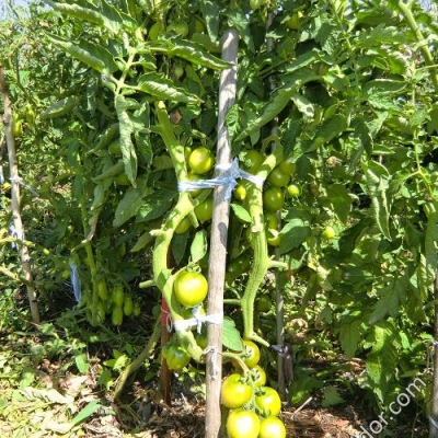 Кусты нуждаются в подвязывании, несмотря на свою компактность. Следует хорошо зафиксировать кисти на опоре, чтобы все завязи в равной степени получали доступ к солнечному свету и воздуху.