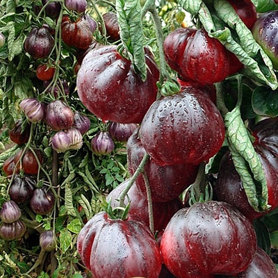 Томат Японский трюфель фиолетовый — это уникальный сорт, который привлекает внимание как опытных садоводов, так и новичков. Он относится к индетерминантным томатам, что означает, что его рост не ограничен определенной высотой. Кусты этого сорта могут достигать до 200 см в высоту и внешне напоминают плакучую иву, создавая эффектный вид на огороде или даче. Листья у растения крупные и поникающие, что придает ему особый шарм.