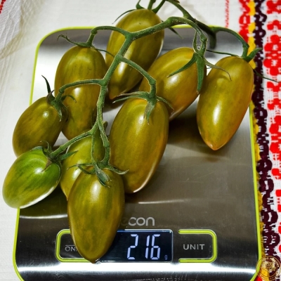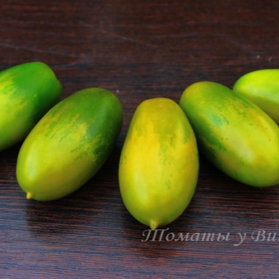 Плоды в стадии зрелости желтовато-зеленые, а форма у них удлиненно-сливовидная с носиком. Масса одного плода варьируется от 80 до 150 граммов. Удлиненная форма способствует удобству хранения и транспортировки.
