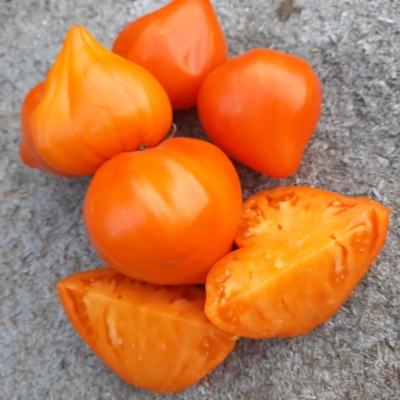 Плоды сорта Желтый клюв имеют насыщенный оранжевый цвет и сердцевидную форму, что делает их не только вкусными, но и привлекательными на вид. Масса одного плода варьируется от 200 до 350 граммов, а в некоторых случаях достигает даже 500 граммов. Это делает их идеальными для употребления в свежем виде или переработки на соки и кетчупы. Мякоть плодов мясистая, плотная и нежная, с минимальным количеством семян, что также является важным фактором при выборе этого сорта для домашнего использования.