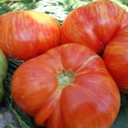 Плоды крупные, увесистые, плоскоокруглой формы. Вес томатов в среднем от 300 до 500 г. Встречаются и более увесистые плоды по 600-800 г. Созревают такие овощи самыми первыми и только один раз.
