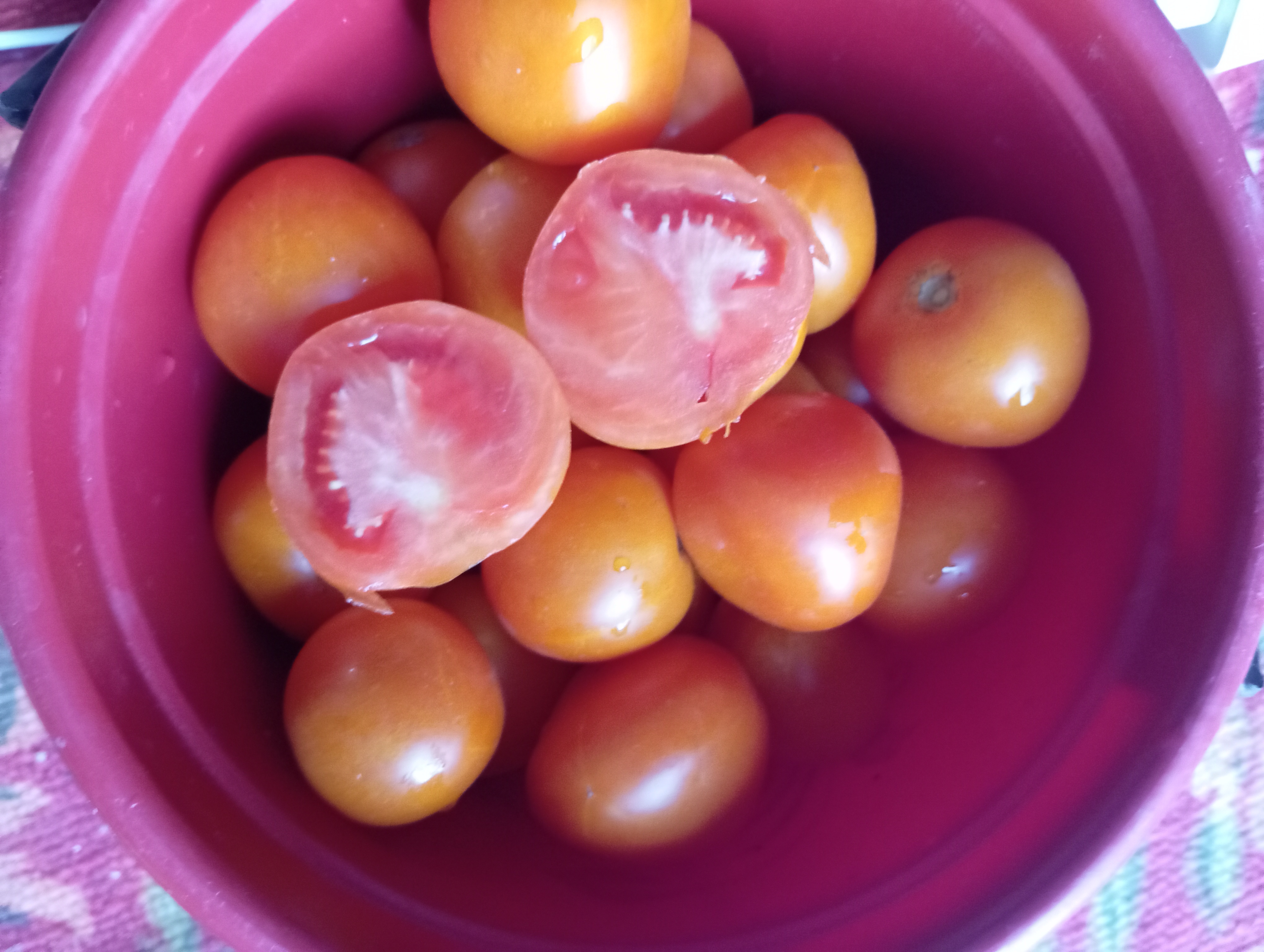 Комментарий: Вкусняшки. Так мои внучата называют эти помидорки. Как говорится, устами младенца глаголет истина. Никаких покраснений и высыпаний на щечках даже у 7 месячной внучки, в отличии от красных помидоров. А в баночках, да соке томатном просто объеденье