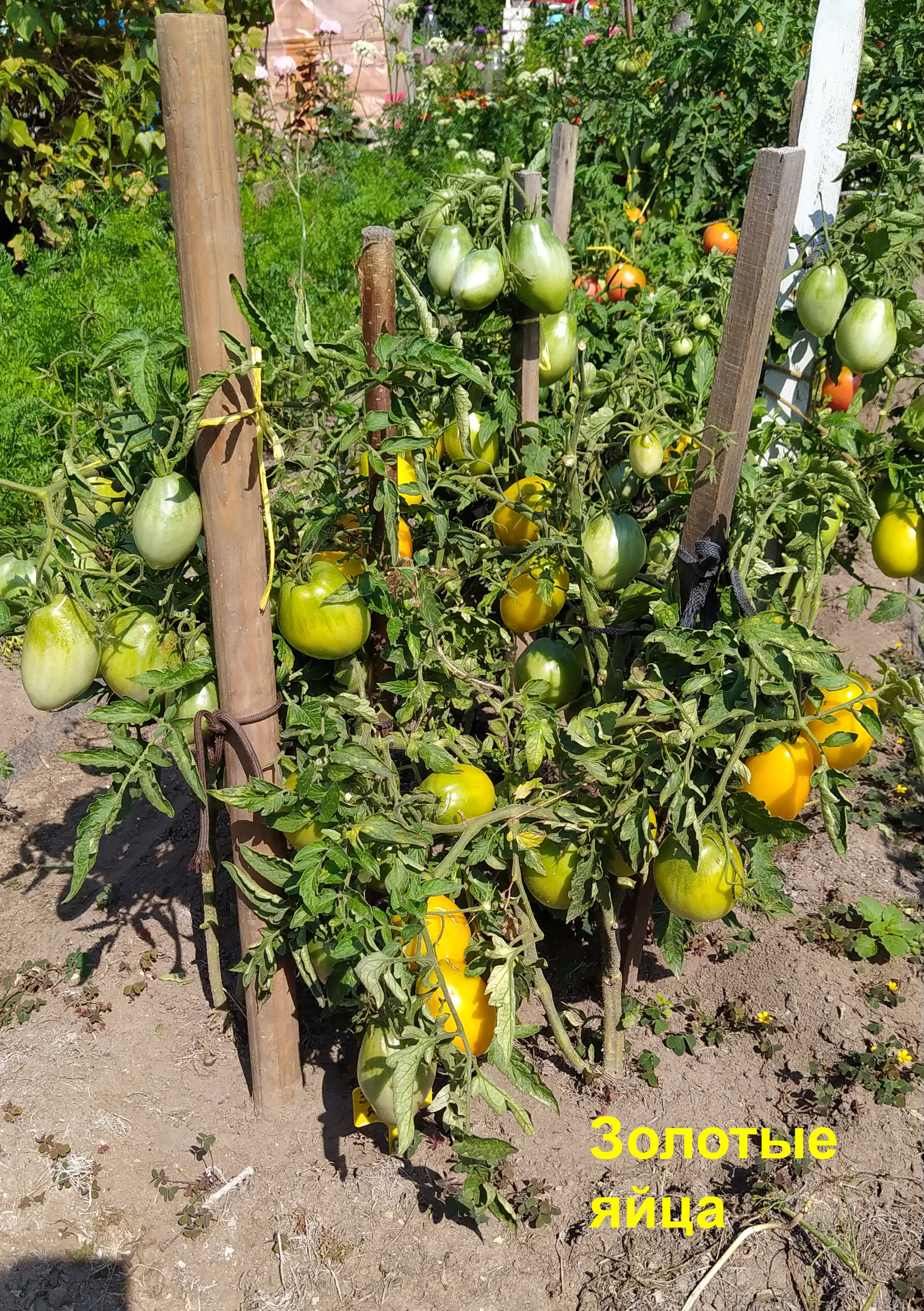 Важным аспектом ухода за томатами Золотые яйца является подвязка кустов. Это поможет им сохранять вертикальное положение и избежать повреждений стеблей при наличии большого количества плодов.