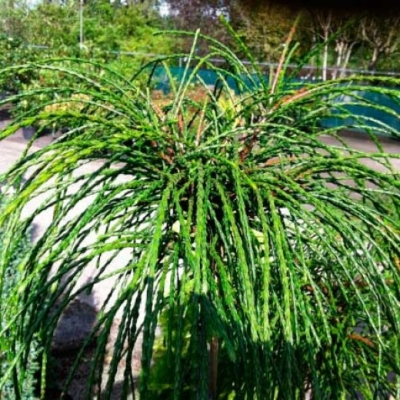Если поближе рассмотреть каждый побег, можно заметить хвойные чешуйки, которые, как бы наслаиваясь друг на друга, создают определенный объем «нитей» и придают им схожесть с шероховатой бечевой.