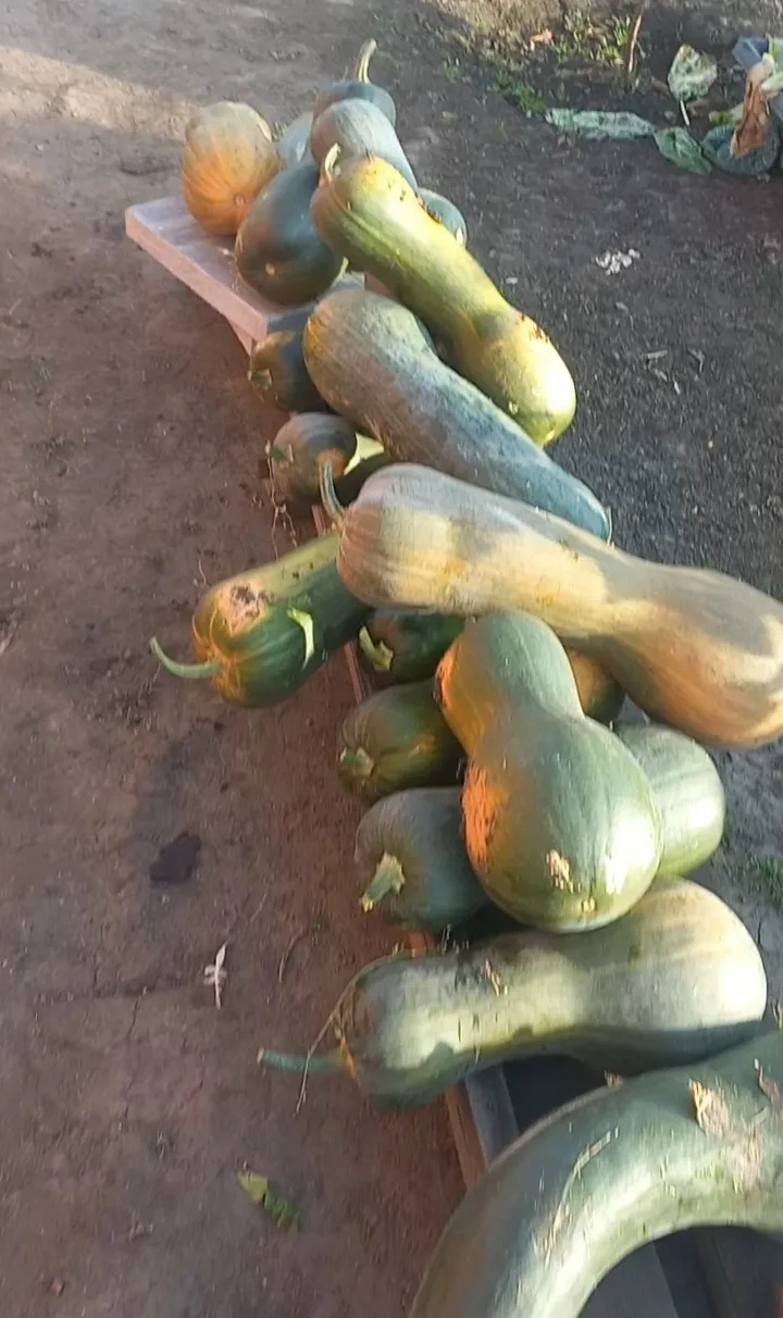 Преимущества: Большой урожай! Тыквы от 4 до 8 кг. Отличный вкус, сладкая с ароматом дыни. Дозревали в квартире, до января хранятся отлично. С 3 растений 18 тыкв.