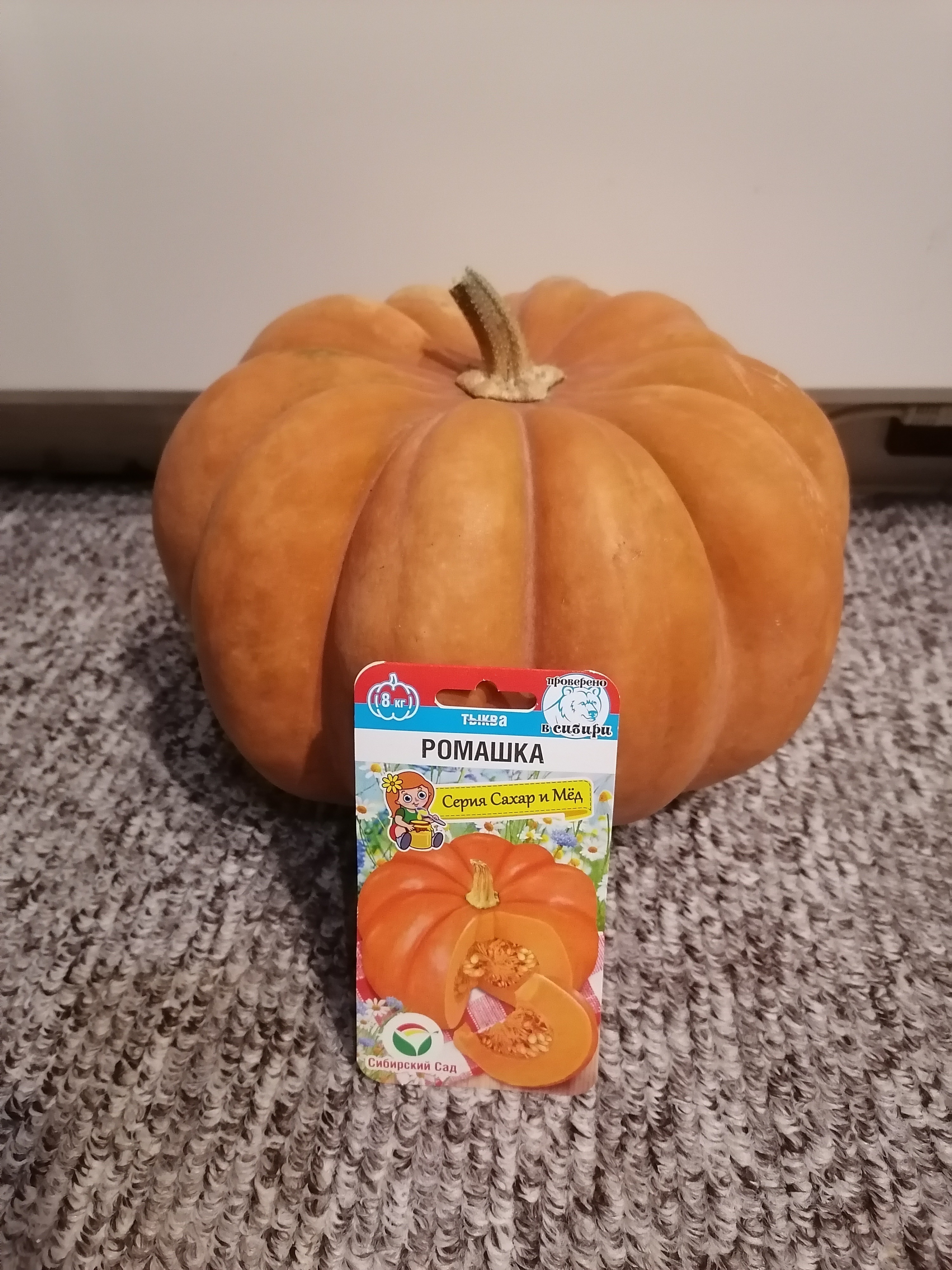 Преимущества: Я более 8 лет выращиваю всевозможные сорта тыквы и Ромашку включаю в посевы ежегодно. Для пригорода Красноярска на рассаду сею в 20 числах апреля. И она всегда успевает вызреть на корню. Очень нравится сортовое соответствие формы, веса и размера куста. Плод плотный. Если похлопать по нему, как мы делаем это с арбузом, звук глухой, равно, как хлопать по камню)) Мякоть плотная, ближе к моркови, хрустящая. Стенка толстая до 12 см, ярко-оранжевая, сладковатая с лёгким дынным вкусом и ароматом свежей зелени. В кулинарных целях идёт, как отличный компаньон в варенье, кубики при варке или запекании не теряют форму. Сок из неё довольно посредственного вкуса, лучше использовать более ароматные сорта. Лежкость средняя (при t +6) в начале декабря начинает портиться.