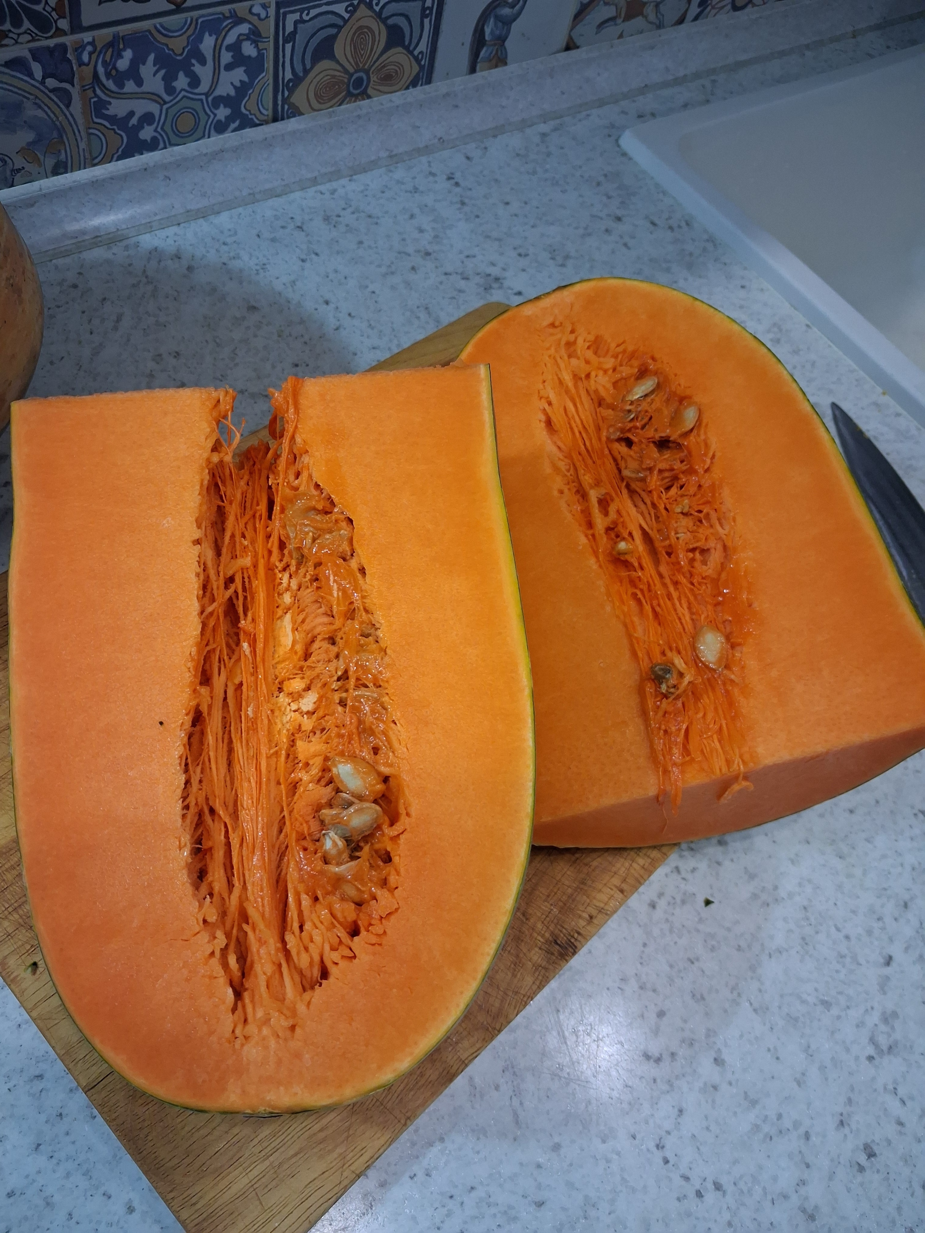 Преимущества: Тонкая шкурка, сплошная мякоть практически – семечек мало и они в "носике" тыквы. Запаха тыквенного нет