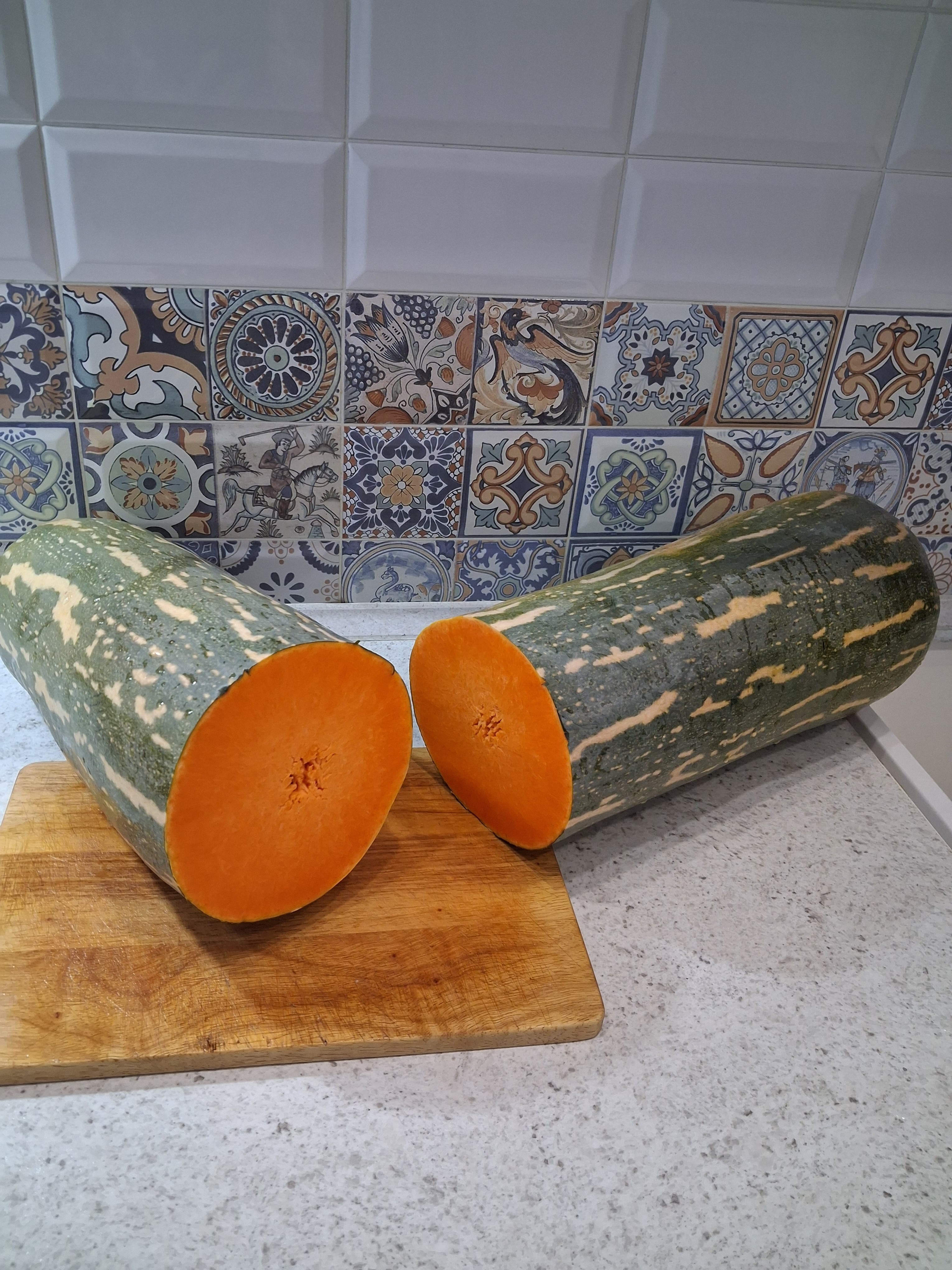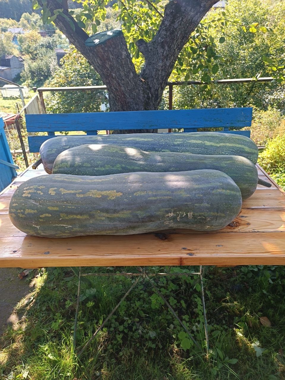 Преимущества: Тыква у меня уродилась длиной 80 см, не взвешивали, подняла с трудом, пока лежит, доспевает.