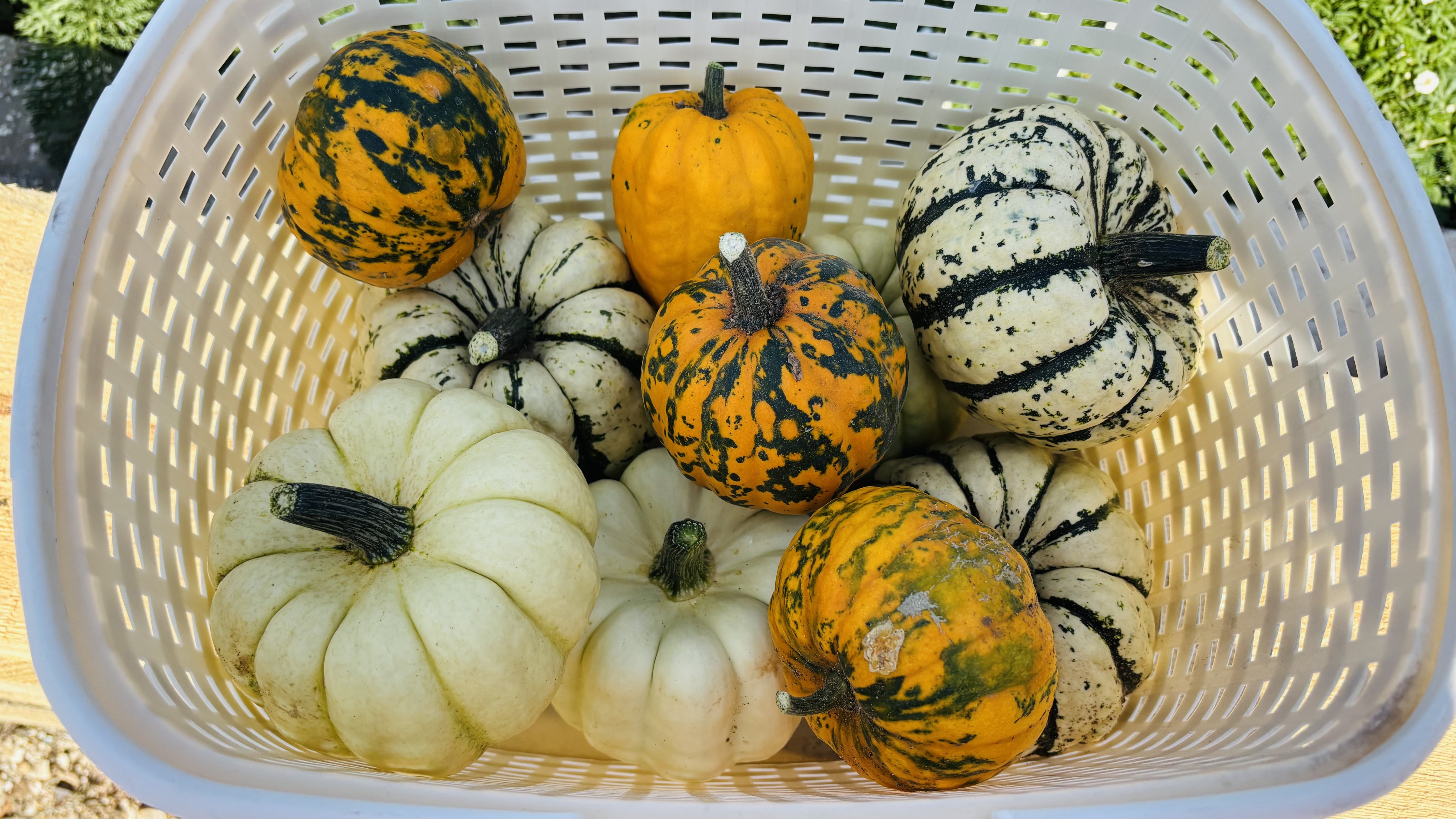Комментарий: Шикарный сорт для декорации, красив, шикарен массой 400-700г, длинноплетистое, на одном кусту 3-5 шт тыквочек вырастает, среднеспелый сорт. На вкус не очень.