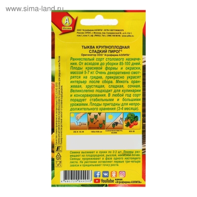 Тыква Сладкий пирог – это крупноплодный сорт, созданный авторами В. Г. Качайником, М. Н. Гулькиным, С. В. Матюниной и О. А. Кармановой в ООО «Агрофирма Аэлита». Он был допущен к использованию в 2015 году. Сорт имеет высокую урожайность – до 10 кг на квадратный метр.
