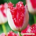 Цветки этого сорта являются настоящим украшением весеннего сада, они очень крупные. Венчики двухцветные — наружные листья окрашены в бледно-розовый цвет, тогда как внутренние лепестки яркие алые с персиковым оттенком. Это создает эффектный контраст и привлекает внимание любителей цветоводства. Края лепестков покрыты мелкой игольчатой бахромой, что придаёт цветкам особую изысканность и оригинальность.