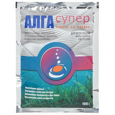 Удобрение Алга Супер представляет собой органоминеральный комплекс, в составе которого главенствующую роль играют бурые морские водоросли. Помимо этого, среди ингредиентов присутствуют 70 минералов, 17 аминокислот, гормоны естественного происхождения, хелатные вещества и сложные сахаристые соединения. При регулярном внесении подкормок растения удается насытить азотом, фосфором, калием, йодом и иными необходимыми элементами. Препарат универсального назначения присутствует в ассортименте бренда «Агробиоком». Средство является водорастворимым, что значительно упрощает процесс его использования.