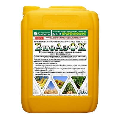 БиоАзФК — это микробиологическое удобрение от компании БашИнком, созданное для полноценного питания растений и улучшения состояния почвы. Оно сочетает в себе азотфиксирующие, фосфор- и калиймобилизующие бактерии, природные витамины, фитогормоны и полисахариды, что делает его уникальным среди биоудобрений. Препарат безопасен для человека и окружающей среды (4 класс опасности — малоопасное вещество).