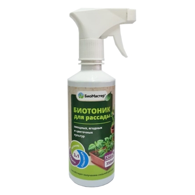 БиоМастер Биотоник — это биологическое удобрение для рассады, обладающее бактерицидным, фунгицидным и росторегулирующим действием. Препарат выпускается в форме готового к применению спрея и предназначен для использования на начальных стадиях развития растений. Он подходит для выращивания рассады овощных и декоративных культур, эффективно стимулирует рост, защищает от болезней и снижает стресс после пересадки.
