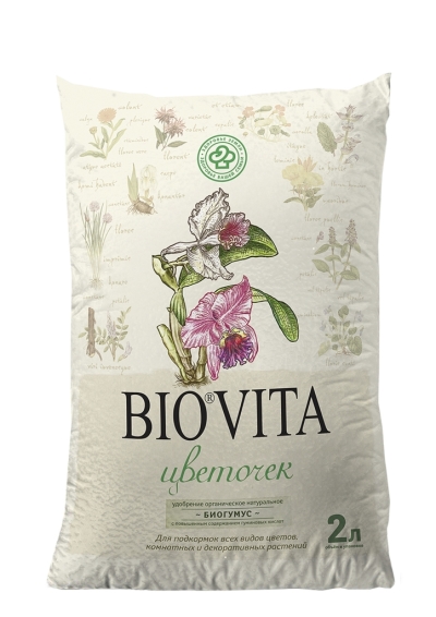 Цветочек Био Вита — это универсальное органоминеральное удобрение на основе биогумуса, обладающее повышенным содержанием гуминовых кислот. Относится к классу безопасных удобрений (IV класс опасности), предназначено для подкормки всех видов цветов, комнатных и декоративных растений. Выпускается в виде сухого, водорастворимого порошка. Продукт сочетает преимущества органических и минеральных компонентов, включая азот (6,5%), фосфор (5,5%), калий (9,5%), магний (0,5%), железо (0,1%) и кобальт (2,0%).