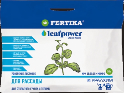 Удобрение Фертика для рассады Leaf Power – комплексный минеральный биопрепарат, в составе которого присутствуют жизненно необходимые для декоративных, плодовых, хвойных, ягодных и овощных культур вещества. Подкормка оказывает комплексное действие, имеет удобную препаратную форму. В составе биопрепаратов отсутствует хлор. Действующие компоненты: