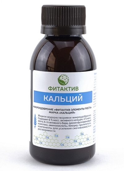 Фитактив Кальций — жидкое водорастворимое микроудобрение, произведённое из химически чистого сырья. В его составе: 6% активного кальция, 4% азота, 6 г/л активного бора, ауксин-фуллереновый комплекс, аминокислоты, биоцид, а также прилипатели и реологические добавки, улучшающие смачиваемость и растворимость.