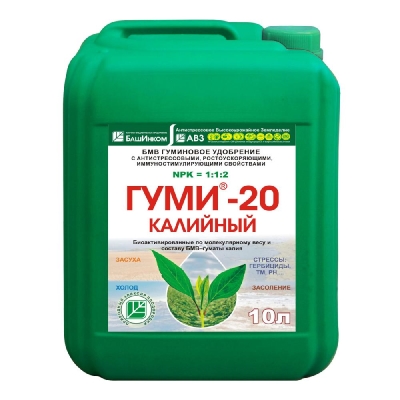В составе препарата Гуми-20 Калийный имеются компоненты, позволяющие структурировать грунт, улучшать его.