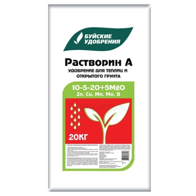 Удобрение Растворин Марка А, 10:5:20+МЭ является надежным помощником для садоводов и огородников. Его использование способствует получению обильного урожая овощей и фруктов, а также созданию прекрасных цветочных насаждений.