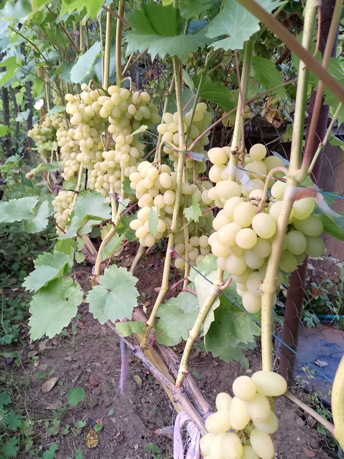 Преимущества: Ранний сорт отлично вызревает в Подмосковье, самая большая гроздь была на 703 грамма