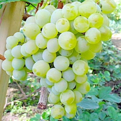 Грозди винограда цилиндро-конической формы средней плотности весом около 123 граммов являются еще одной отличительной чертой этого сорта. Ягоды округлой формы весом примерно 2 грамма имеют зелено-желтый цвет и сочную мякоть. Сок ягод бесцветный, а наличие средних семян добавляет интереса к этому сорту.