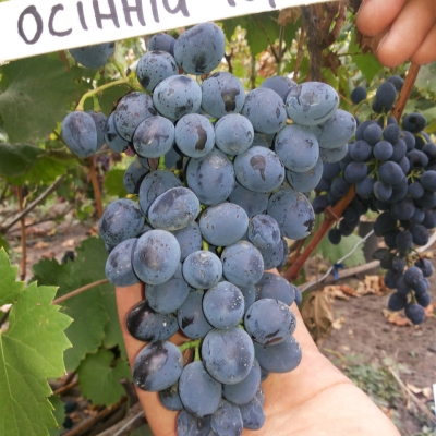 Грозди у Осеннего черного крупные, конической формы и средней плотности. Средний вес грозди составляет около 450 граммов, а максимальный может достигать до 700 граммов. Это делает сорт привлекательным для коммерческого выращивания, так как он обеспечивает высокий выход продукции при относительно небольших затратах труда.