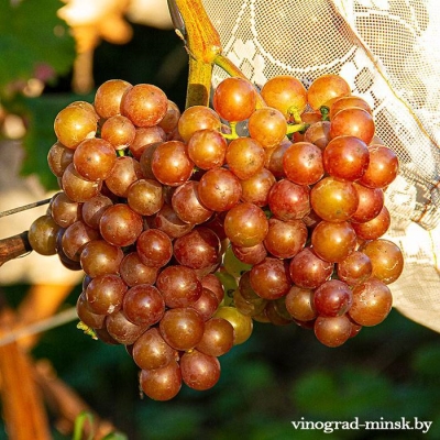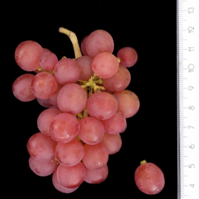 Главной особенностью гроздей этого сорта является их большой размер. Вес грозди может достигать от 200 до 300 граммов. Ягоды имеют округлую форму и розовый окрас. Вес каждой ягоды составляет от 2,5 до 3 граммов, что является средним значением.