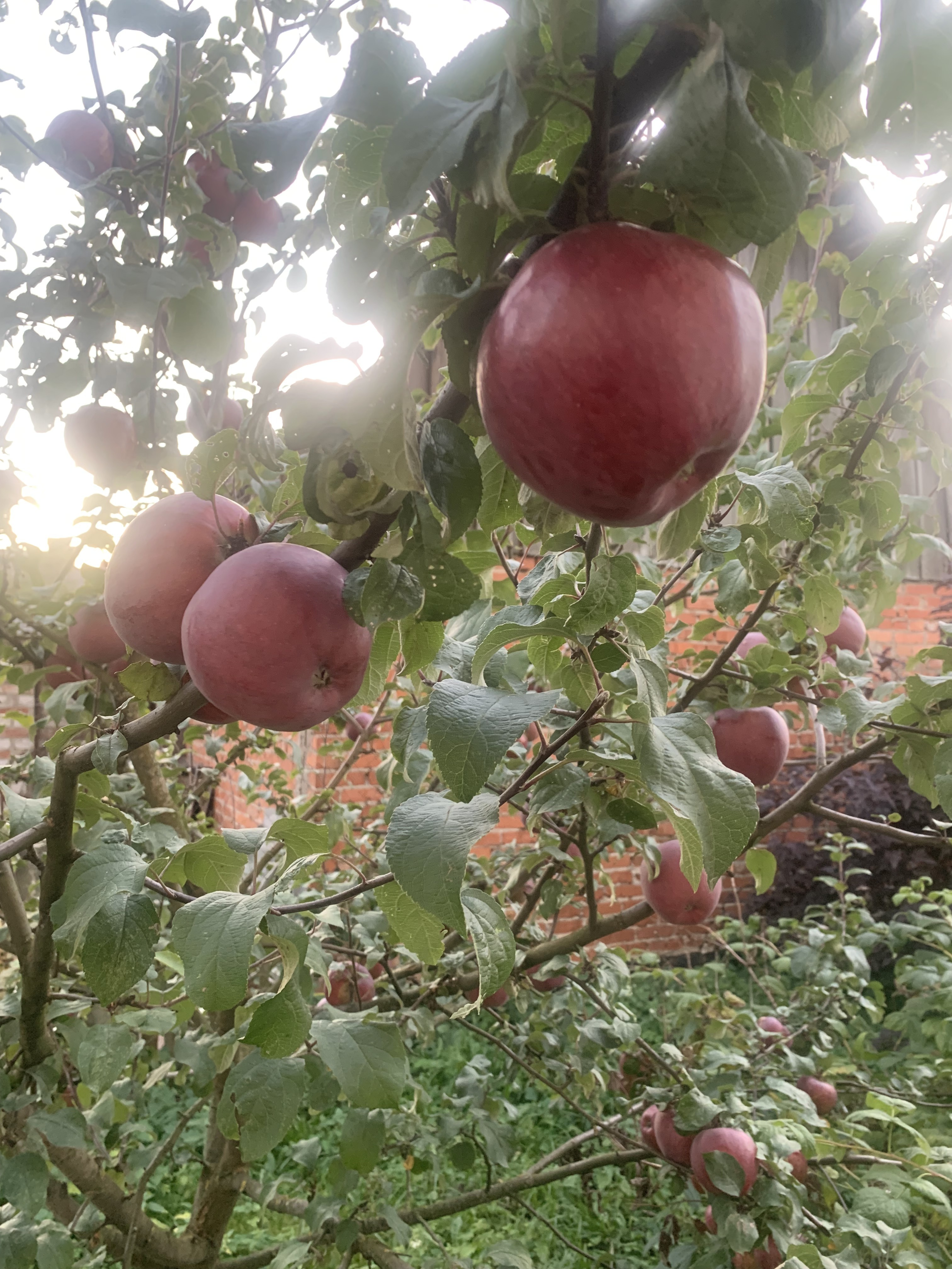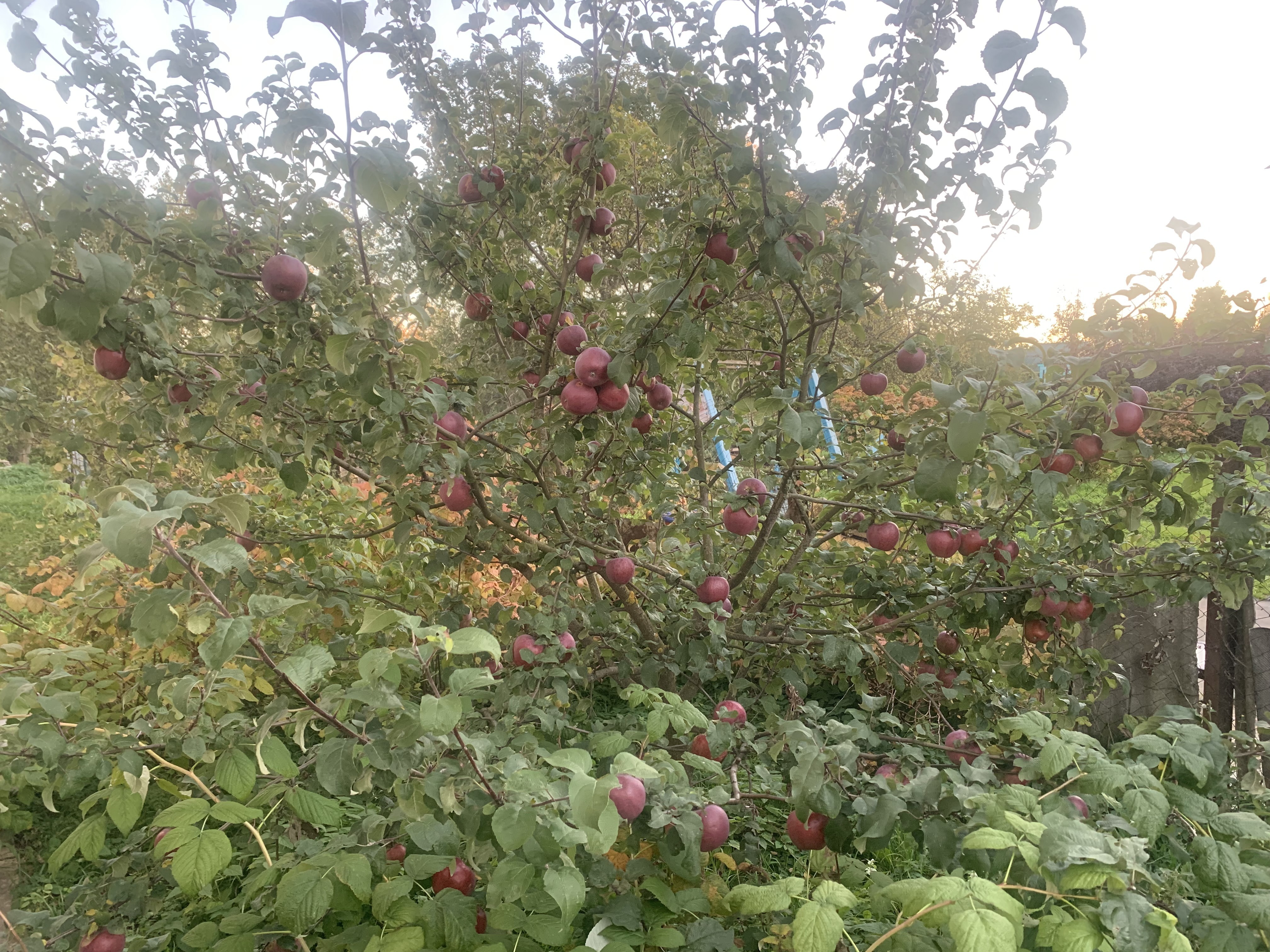 Комментарий: Яблоня красивая, с плодами смотрится как в сказке. Урожайность хорошая. Если бы не цветоед – была бы вся усыпана яблоками.