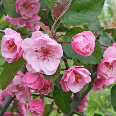 Декоративная яблоня Бренди Мэджик – это украшение любого сада или дачного участка, которая была выведена недавно, но быстро стала востребованной и популярной среди садоводов благодаря своей красоте и неприхотливости ухода. Мини-деревце с махровыми цветами и миниатюрными плодами характеризуется компактностью, поскольку его высота не превышает 4-6 метров, сменой окраса листьев – от сочно-зеленого до золотисто-красного, а также съедобными плодами.