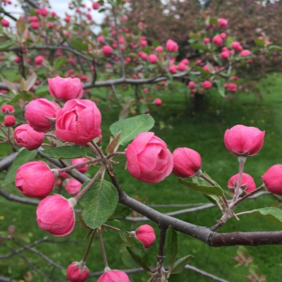 Первые цветы на дереве появляются в конце весны – середина мая, а маленькие, слегка плоские яблоки – с августа и до самых холодов. Держатся плоды на ветвях довольно долго.